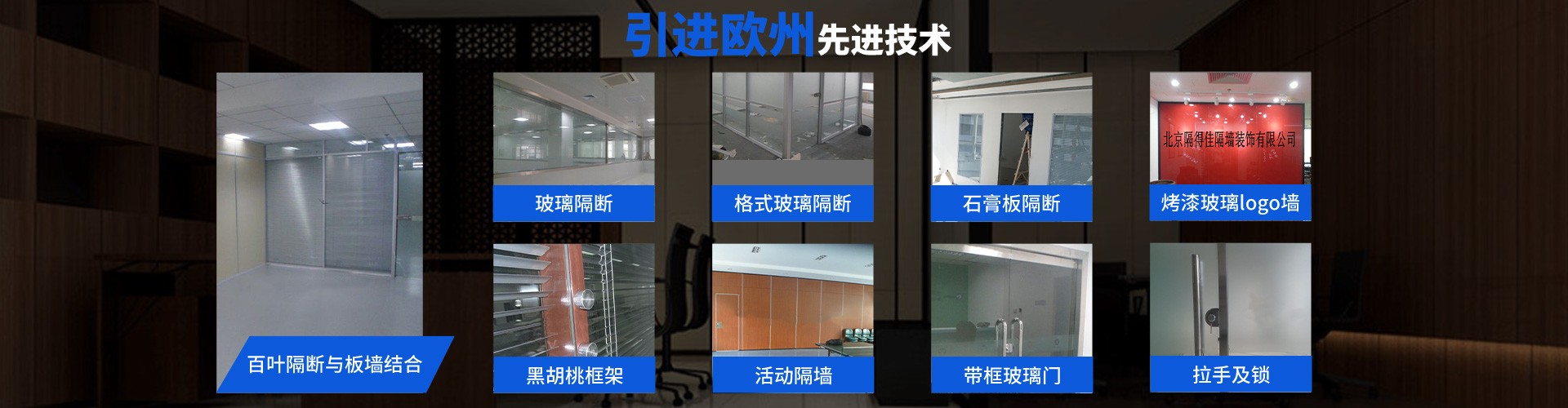 北京隔得佳隔墻裝飾有限公司主要制作與銷(xiāo)售:辦公隔斷,玻璃隔斷,不銹鋼隔斷,辦公玻璃隔斷,雙玻百葉隔斷,活動(dòng)隔斷,単玻隔斷,辦公玻璃屏風(fēng),背漆玻璃隔斷,遙控電動(dòng)百葉隔斷,酒店屏風(fēng),宴會(huì)廳隔斷,酒店隔斷,固定隔斷,移動(dòng)玻璃隔斷,活動(dòng)玻璃隔斷,多功能廳隔間等等,活動(dòng)隔斷系列廣泛用于會(huì)議室,酒店,酒樓,賓館,多功能廳,展廳等場(chǎng)所;玻璃隔斷系列多用于寫(xiě)字樓,金融機(jī)構(gòu),政府辦公,醫(yī)院,工廠(chǎng)等場(chǎng)所。